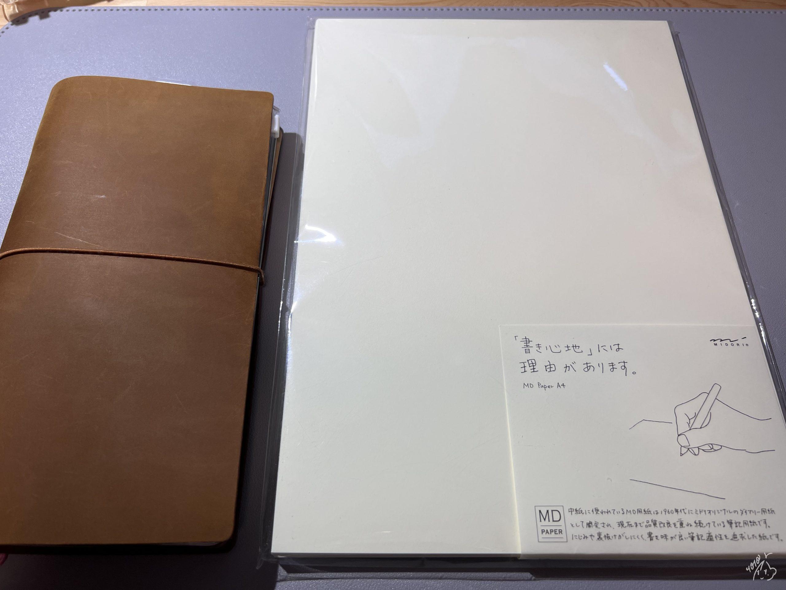 MDノートジャーナルに使用されているMD用紙はトラベラーズノートのリフィルにも使用されているので、藤堂にとってはとても馴染みがあるのですが、ノートの書き方や用途でペンの相性も違ってくるのかな…と思う最近です。
