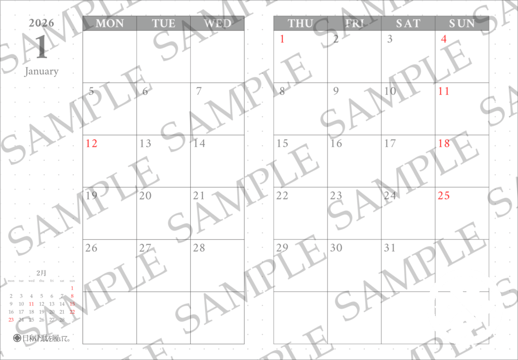 12/24、SHOPにてトラベラーズノート用2026年1月リフィルデータの販売を開始しました!