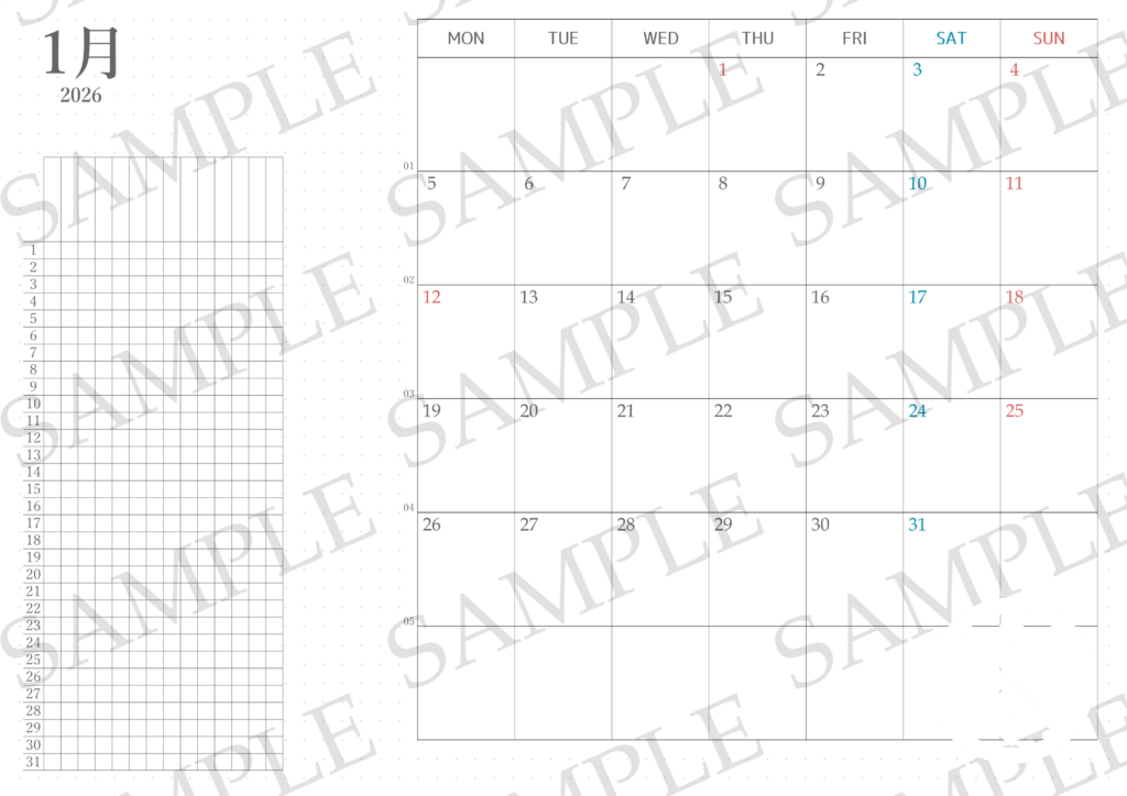 12/24、SHOPにてトラベラーズノート用2026年1月リフィルデータの販売を開始しました!