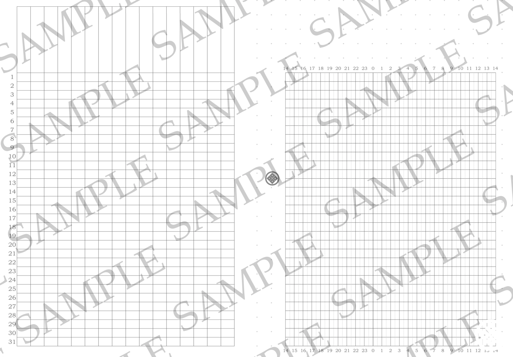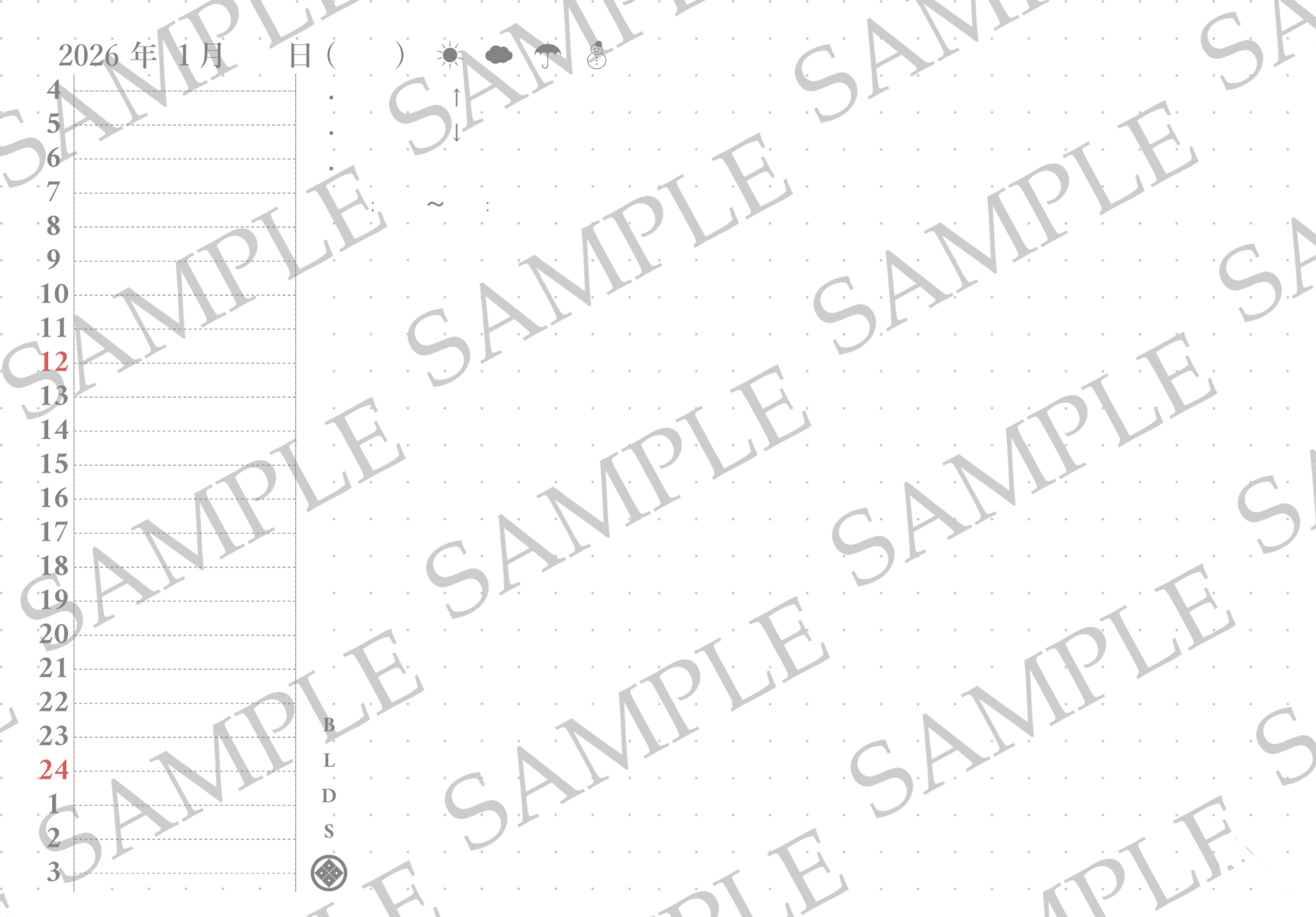 上の画像のマンスリーページとデイリーページはA4印刷時の見え方ですので、折ったり切ったりして使います。