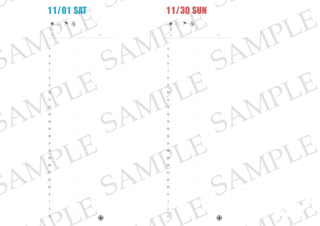 上の画像のマンスリーページとデイリーページはA4印刷時の見え方ですので、折ったり切ったりして使います。