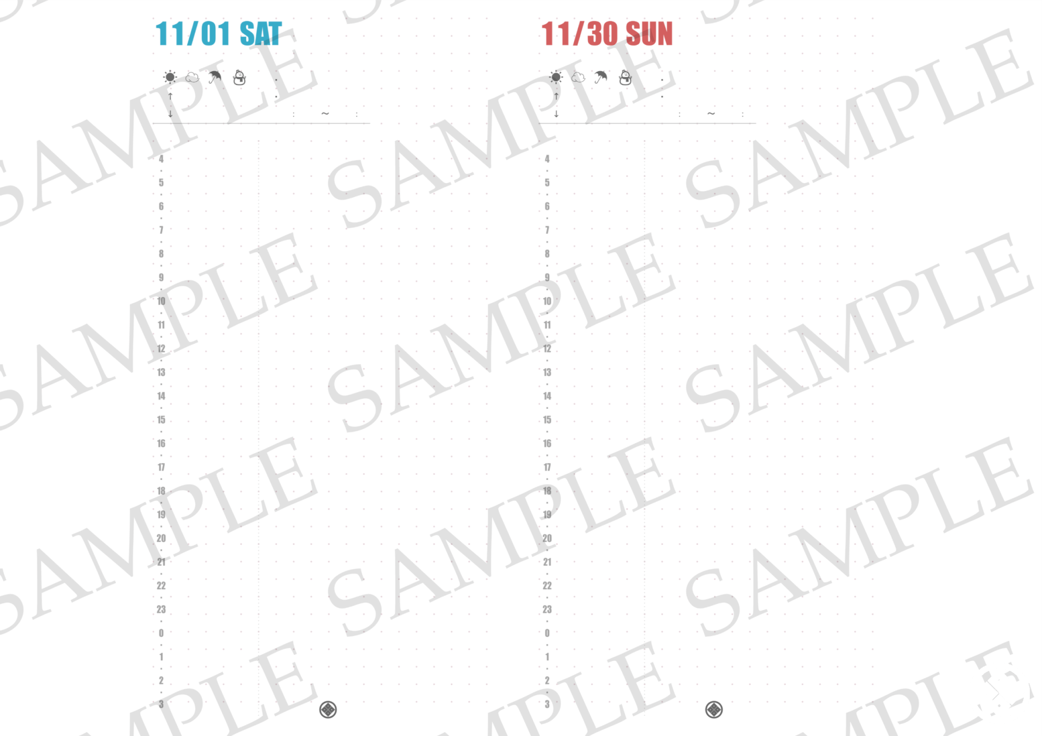 上の画像のマンスリーページとデイリーページはA4印刷時の見え方ですので、折ったり切ったりして使います。