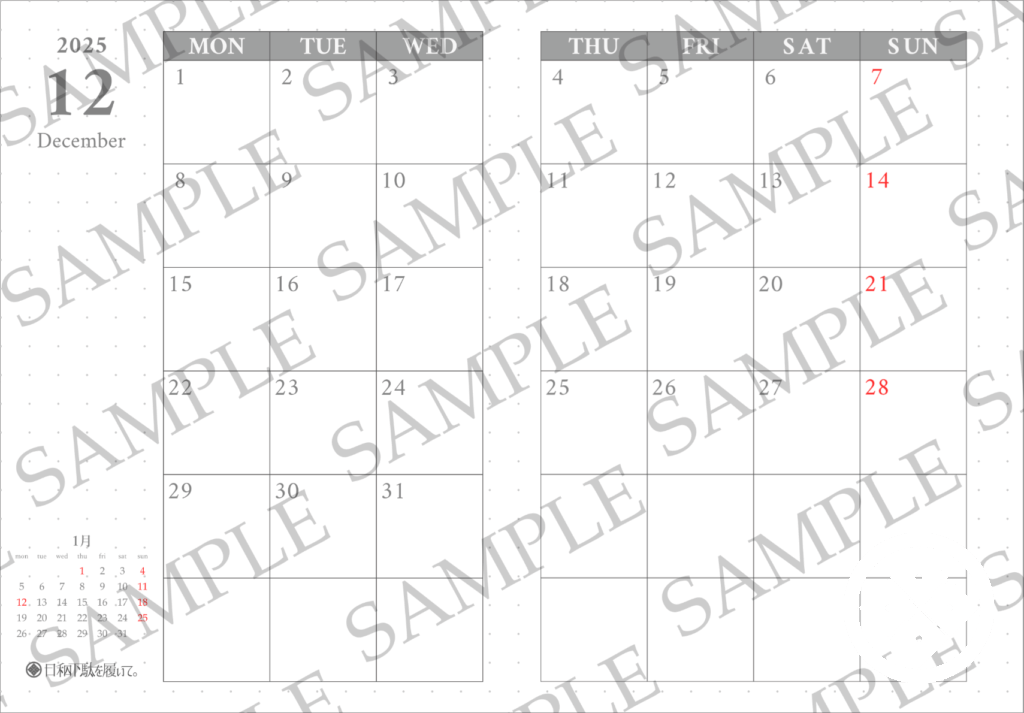 11/25、SHOPにてトラベラーズノート用2025年12月リフィルデータの販売を開始しました!