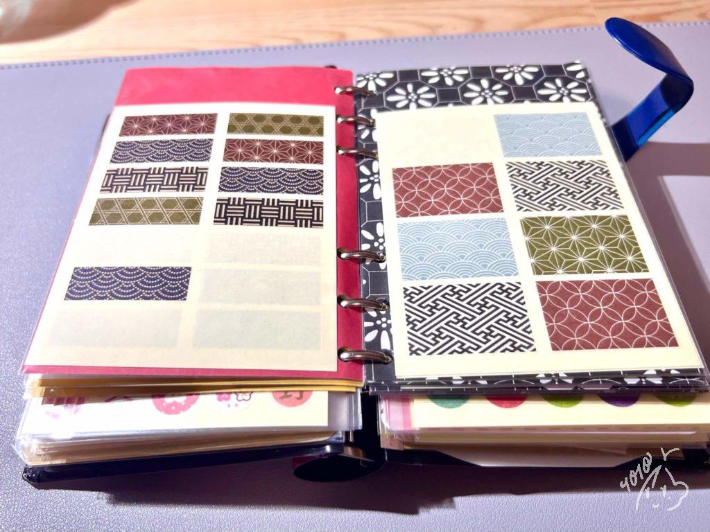 ここには、ビニールファイル(?)や、シール用リフィル、ペーパークロスジッパーなどを使用してシールを収納しています。